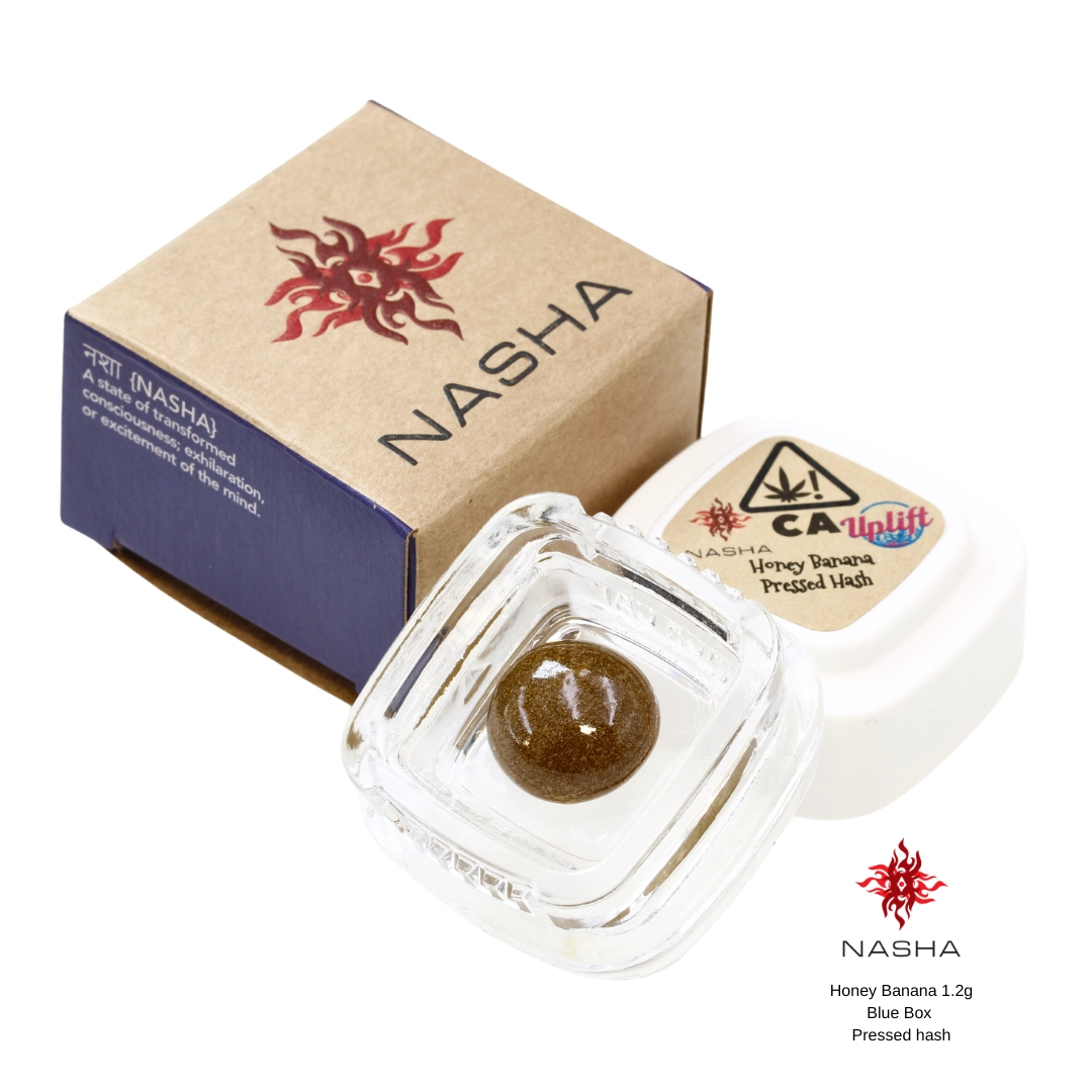 • Nasha’s Blue Label Hash is a 1.2g hand-rolled sphere of pressed hash, always made from whole cured plants.